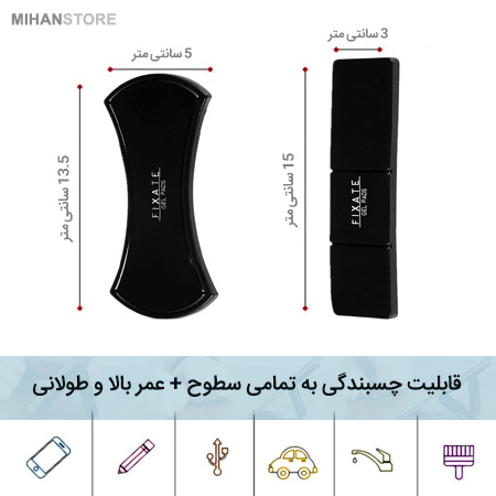 نگهدارنده ژله ای جادویی Fixate نسل جدیدی از نگهدارندهای گوشی(هولدر) هستند که همانطور که از اسم آنها پیداست دارای ساختاری لاستیکی و انعطاف پذیراند و طوری طراحی شده اند که به راحتی اشیاء در اندازه موبایل ، تبلت و یا ریموت خودروی شما را نگه دارند. نگهدارنده ژله ای جادویی Fixate در دو طرف از خاصیت چسبندگی برخوردار است که یک سطح آن روی داشبورد خودرو یا هر جای دیگری و سطح دیگر شیء مورد نظر شما چسبانده می شود. نگهدارنده Fixate به دلیل ساختاری لاستیکی با تکنولوژی نانو که دارند باعث هیچگونه نویز و یا اختلال در کارکرد وسایل الکترونیکی که روی آنها قرار گرفته نمی شوند. شما می توانید به راحتی نگهدارنده ژله ای را از سطح داشبورد جدا کنید و روی سطح یا داشبورد دیگر بدون این که حتاً ذره ای از اثر چسباندگی آن روی داشبورد یا اشیاء باقی بماند قرار ردهید. نگهدارنده ژله ای جادویی Fixate قابلیت شست و شو دارد و در صورت کثیف شدن می توانید آن را شسته و برای بارها و بارها استفاده کنید.