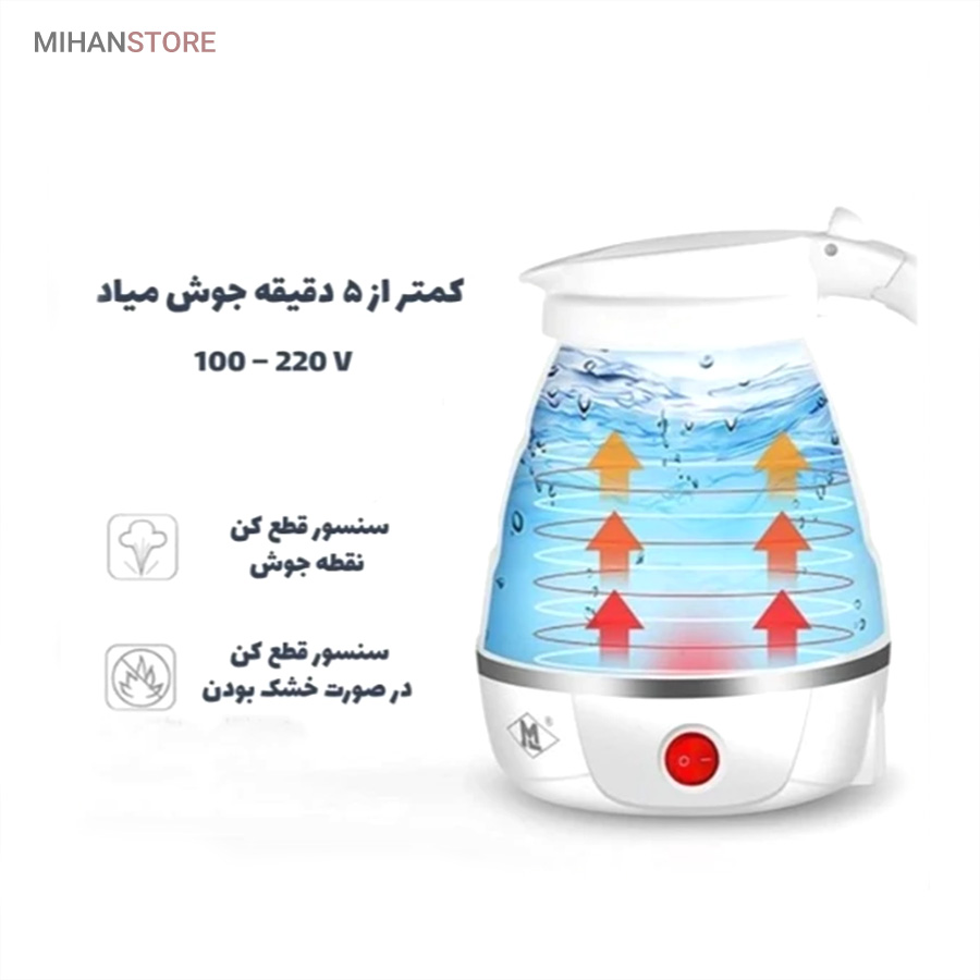 کتری برقی تاشو سیلیکونی با ویژگی‌ های جذابی مانند قفل کردن درب تک لمسی ، دستگیره‌ های طراحی شده ارگونومیک ، طراحی منحصر به فرد یک خرید عالی برای شما می باشد. کتری برقی تاشو مسافرتی یک محصول بسیار عالی و کارآمد برای کسانی ست که اغلب اوقات خود را در گردش و مسافرت هستند و دوست دارند بدون آنکه فضای زیادی از ماشینشان اشغال شود یک کتری مخصوص تهیه چای وآب جوش نیز همراه خود داشته باشند تا بتوانند در حین استراحت یک چای داغ دلنشین نیز نوش جان کنند.