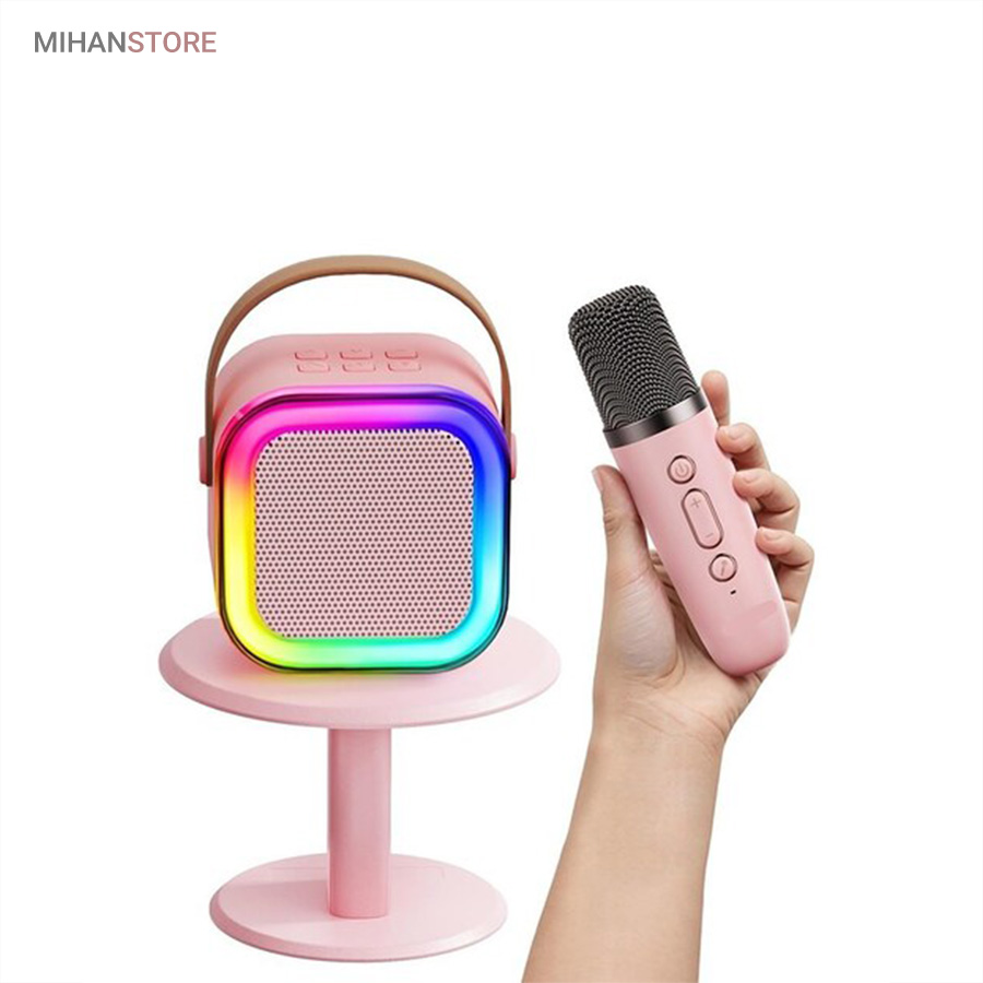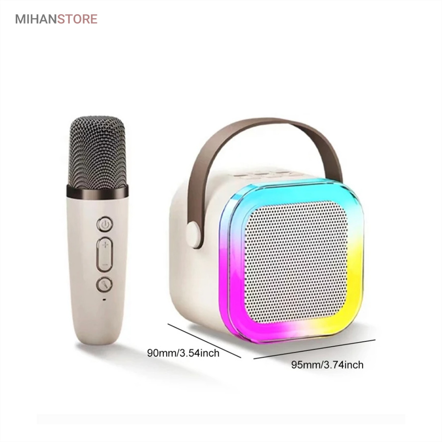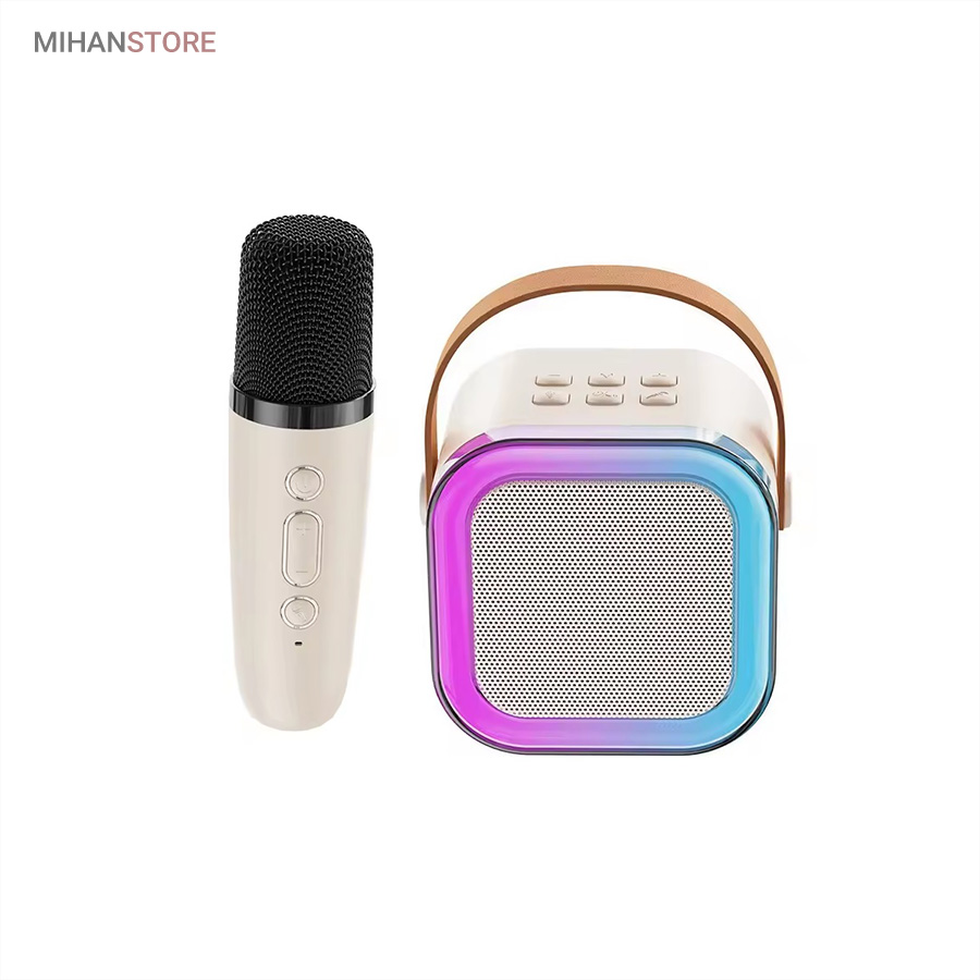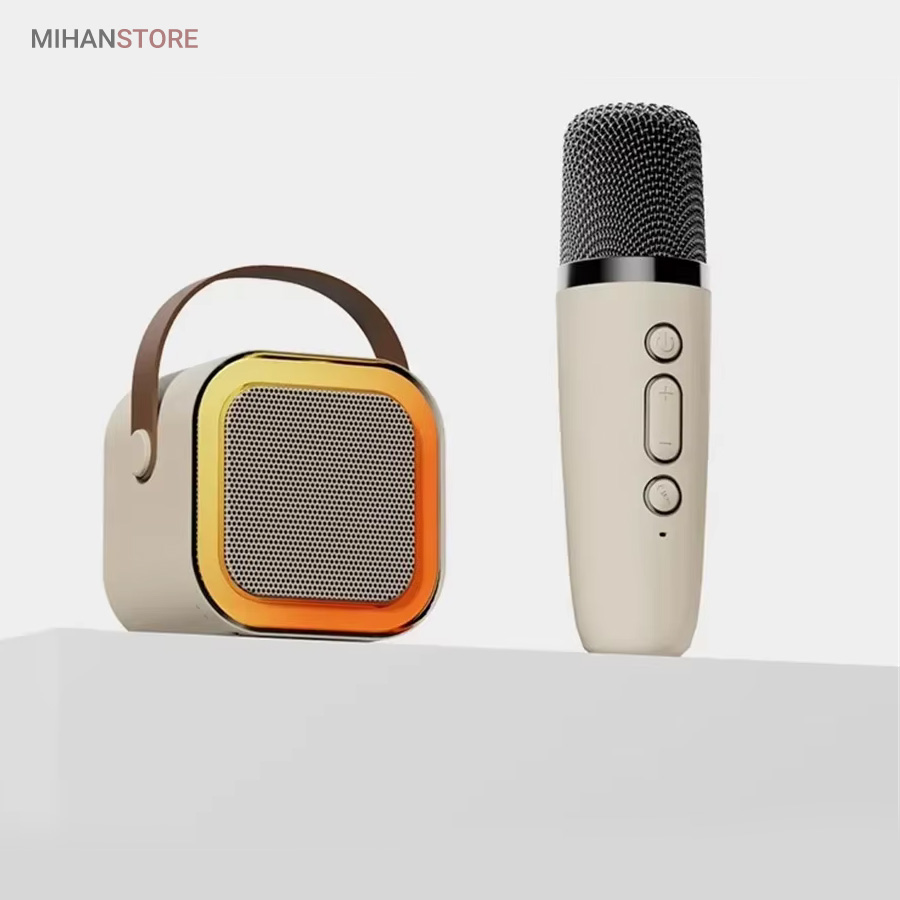 اسپیکر بلوتوثی میکروفن دار قابل حمل یک اسپیکر قابل حمل با قابلیت اتصال بلوتوث، USB و کارت حافظه است. این اسپیکر همچنین دارای یک میکروفون بی سیم است که برای سخنرانی، آواز خواندن و ضبط صدا مناسب است.با استفاده از میکروفون افکت دار بر روی صدای خود تغییرات ایجاد کنید و لحظات خوش و بامزه با همراهان خود ایجاد کنید.این اسپیکر مناسب برای استفاده در منازل، اتاق‌های کار، فضاهای آموزشی و حتی در فضاهای باز می‌باشد. با طراحی مدرن و جمع و جور، این اسپیکر به هر مکانی ستایش می‌آورد و جلوه‌ی منحصر به فردی به آن می‌بخشد.مناسب برای گوش دادن به موسیقی، تماشای فیلم با کیفیت صدای عالی. با اسپیکر بلوتوثی میکروفن دار قابل حمل، تجربه‌ای جدید از گوش دادن به موسیقی را تجربه کنید.