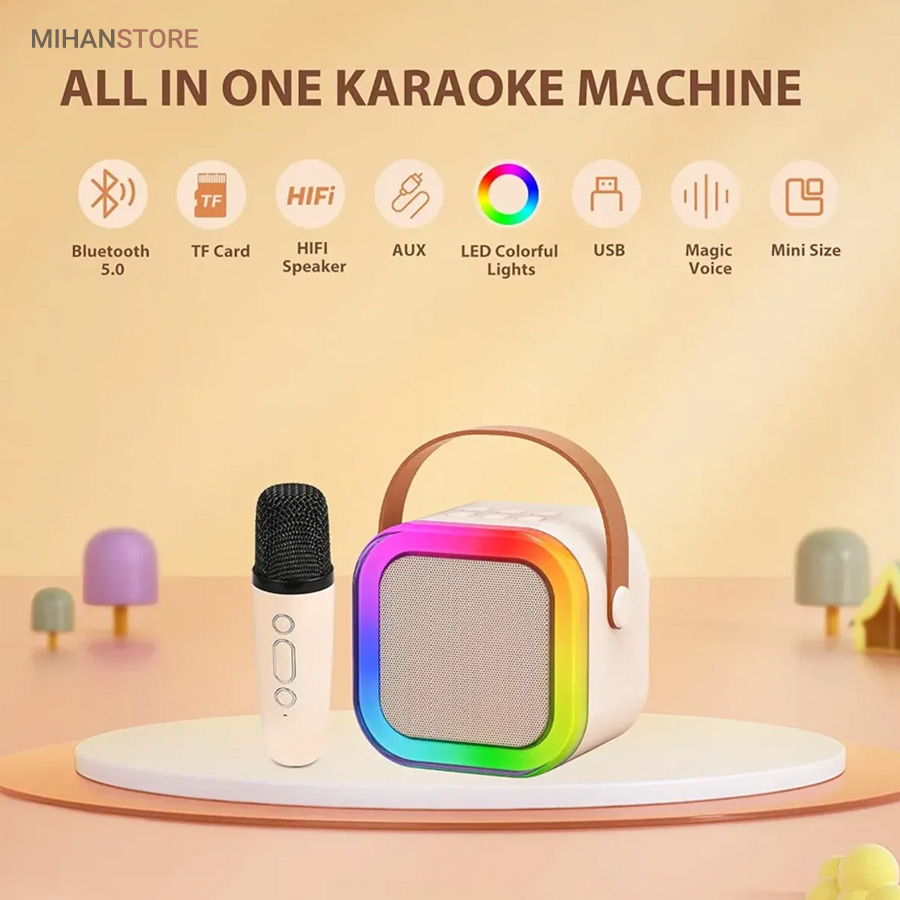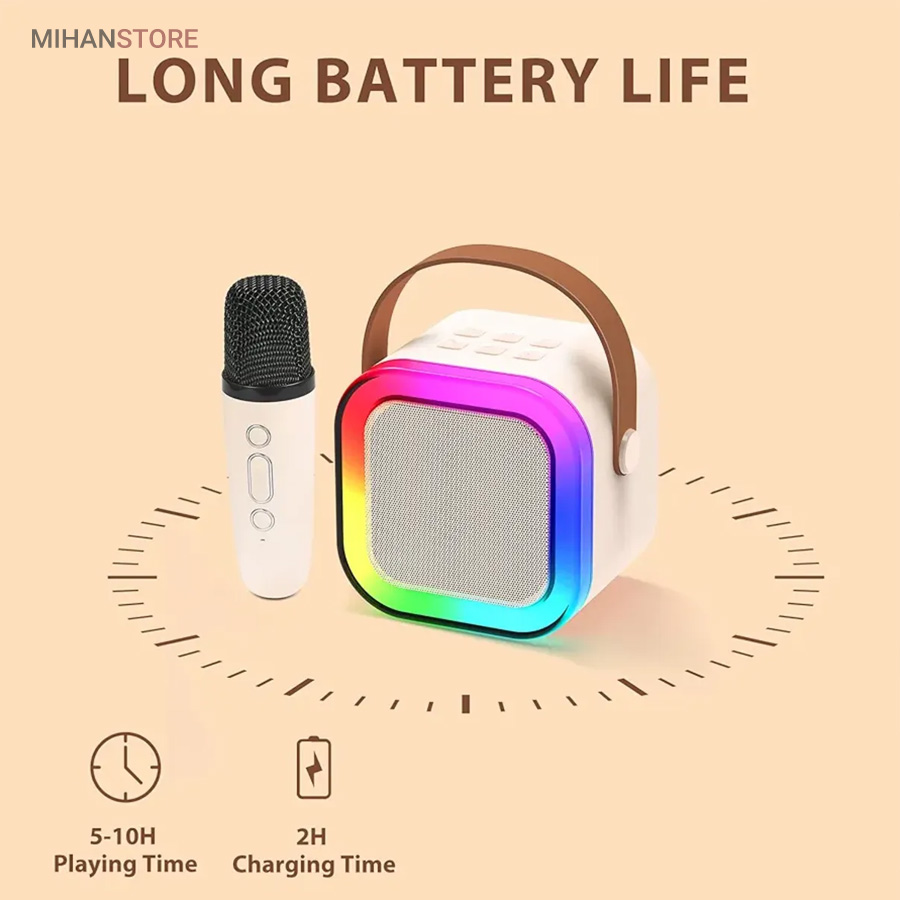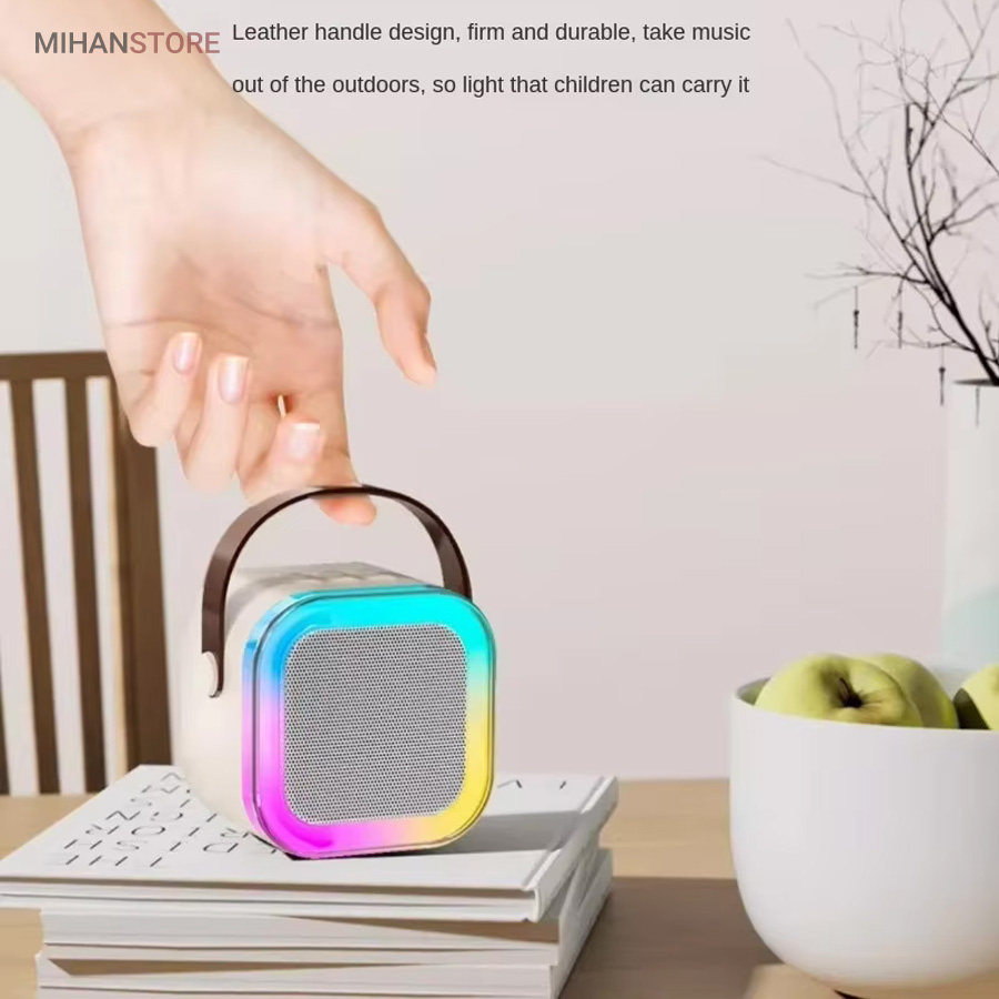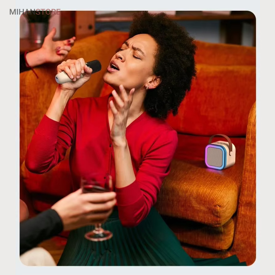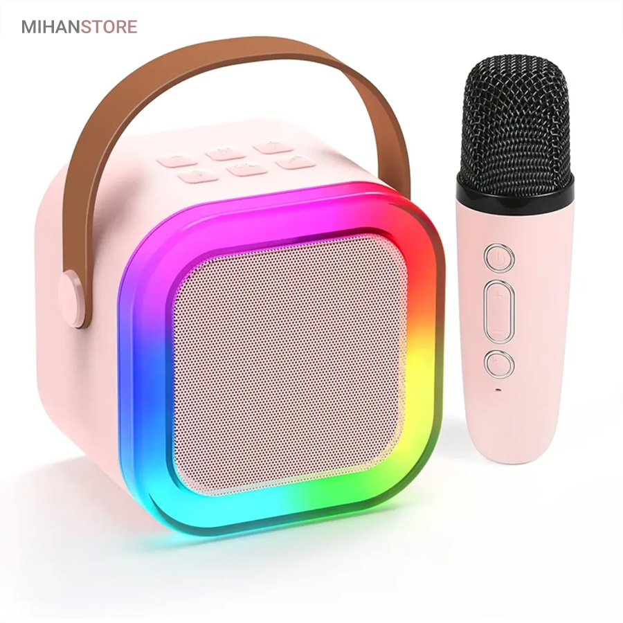 اسپیکر بلوتوثی میکروفن دار قابل حمل یک اسپیکر قابل حمل با قابلیت اتصال بلوتوث، USB و کارت حافظه است. این اسپیکر همچنین دارای یک میکروفون بی سیم است که برای سخنرانی، آواز خواندن و ضبط صدا مناسب است.با استفاده از میکروفون افکت دار بر روی صدای خود تغییرات ایجاد کنید و لحظات خوش و بامزه با همراهان خود ایجاد کنید.این اسپیکر مناسب برای استفاده در منازل، اتاق‌های کار، فضاهای آموزشی و حتی در فضاهای باز می‌باشد. با طراحی مدرن و جمع و جور، این اسپیکر به هر مکانی ستایش می‌آورد و جلوه‌ی منحصر به فردی به آن می‌بخشد.مناسب برای گوش دادن به موسیقی، تماشای فیلم با کیفیت صدای عالی. با اسپیکر بلوتوثی میکروفن دار قابل حمل، تجربه‌ای جدید از گوش دادن به موسیقی را تجربه کنید.