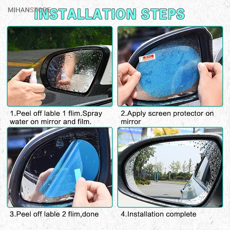 کاربرد محصول خودروها: مناسب برای نصب بر روی آینه‌های خودروهای سواری که در شرایط بارانی یا مه‌آلود رانندگی می‌کنند. موتورسیکلت‌ها: برای افزایش وضوح آینه‌های موتورسیکلت در هنگام باران و شرایط آب و هوایی نامساعد.